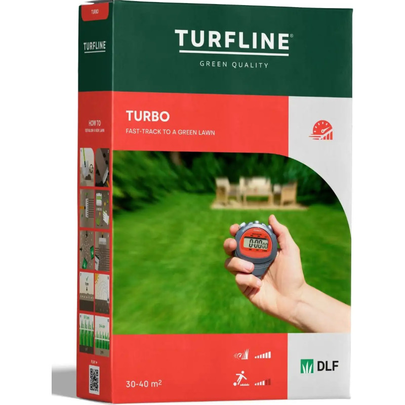 Gazonul Turbo Turfline este o mixtură cu instalare rapidă, conține Raigras peren – iarba cu germinarea cea mai rapidă, iar Quick Action asigură cea mai bună instalare și creștere, chiar și în condiții de temperaturi scăzute.
