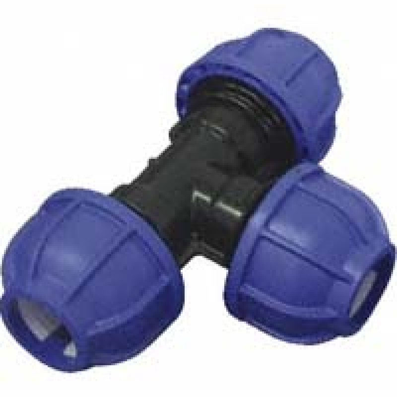 Teul de compresiune este o piesă din plastic dur care face legatura între trei țevi de polietilenă cu dimensiunea de 25 mm, PN 16.